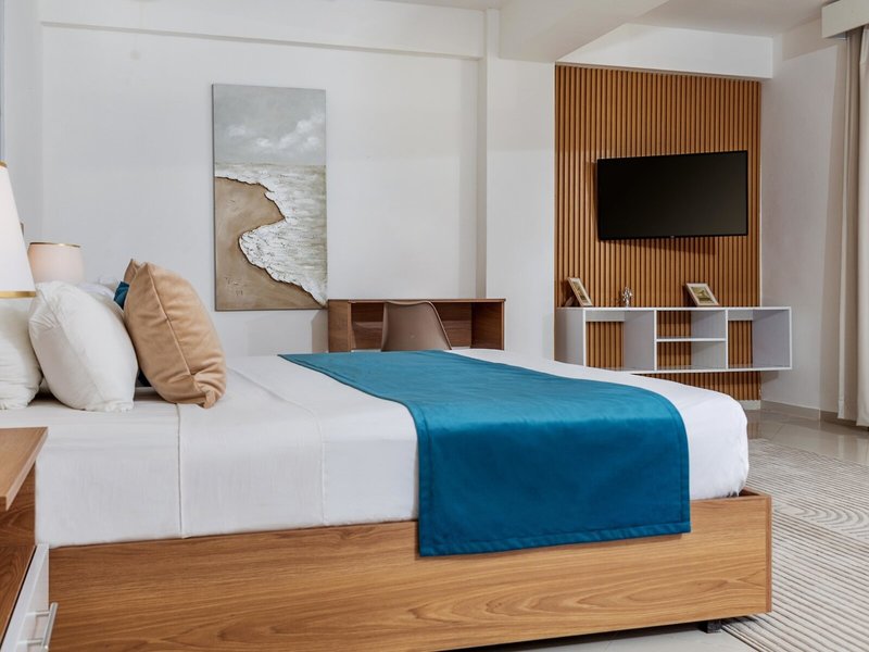 - Junior Suite (JSX1), Juniorsuite, Nichtraucherzimmer, ca. 70 m², Gesamtanzahl der Räume in diesem Zimmertyp: 1, Aufteilung wie folgt: kombiniertes Wohn-/Schlafzimmer, 1 Doppelbett (151x180cm), Babybett: ohne Gebühr, Anfrage nicht notwendig, Klimaanlage: ohne Gebühr, Fußboden: Fliesenboden, Safe: ohne Gebühr, Deckenventilator, Schreibtisch, Minibar: gegen Gebühr, Telefon, Internet: WLAN/WiFi: ohne Gebühr, Fernseher, Reinigungsservice: täglich, ohne Gebühr, Dusche, WC, Föhn, Balkon: mit Sitzgelegenheit