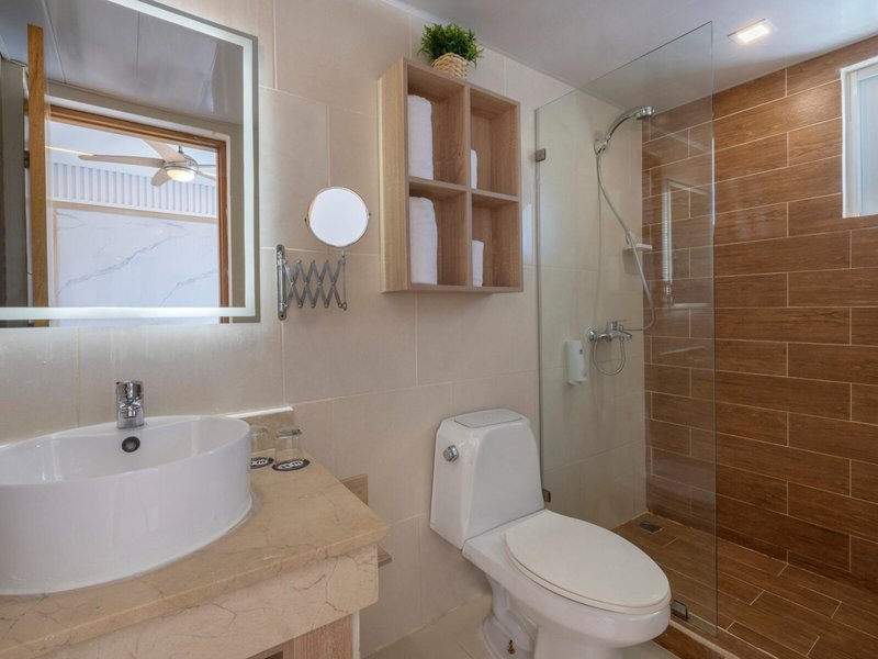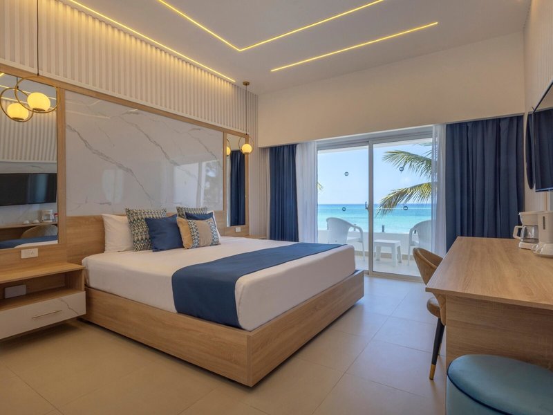 - Double Ocean View (DZF1), Doppelzimmer, Meerseite, Meerblick, ca. 26 m², Gesamtanzahl der Räume in diesem Zimmertyp: 1, Aufteilung wie folgt: 1 Schlafzimmer, 1 Doppelbett (181x210cm), Klimaanlage: individuell regelbar, Heizung: individuell regelbar, Fußboden: Fliesenboden, Safe: gegen Gebühr, Standventilator, Telefon, Internet: WLAN/WiFi: ohne Gebühr, Fernseher: Flatscreen, Dusche, separates WC, Föhn, Balkon oder Terrasse: mit Sitzgelegenheit