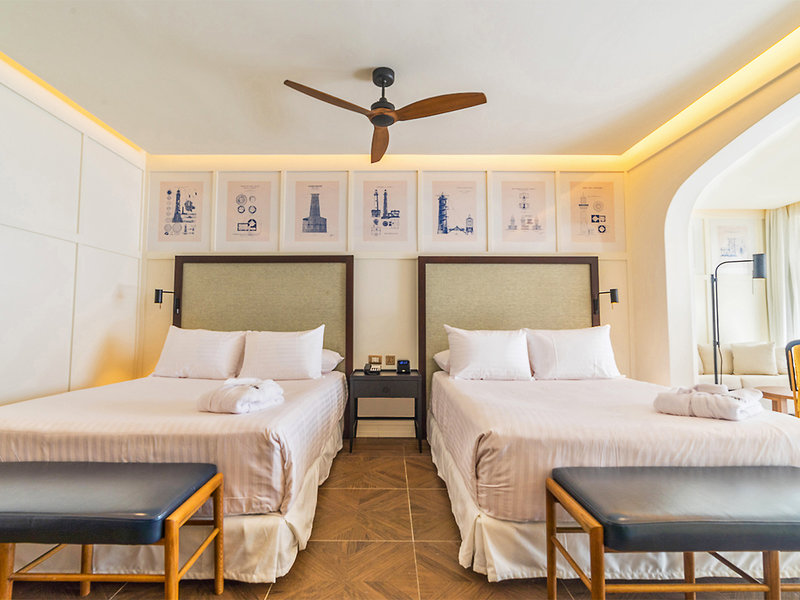 Privilege-Juniorsuiten (JSP, ca. 58 qm), bei gleicher Ausstattung wie die Juniorsuiten mit zusätzlichen Annehmlichkeiten wie Willkommensgeschenk, 1 Flasche Wein zur Begrüßung, Kissenmenü, Zugang zur Privilege-Lounge, Premium-Minibar, personal. Check-in und Check-out, 24-Stunden-Zimmerservice, separater Strandbereich. Max. 4E