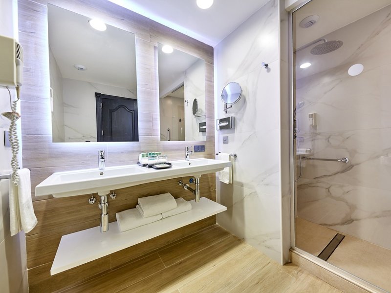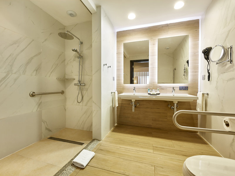 - Junior Suite Standard Handicapped (JSX4), Juniorsuite, Gartenblick, Blick auf die Nachbarhotels, Außenseite, ca. 35 m², Gesamtanzahl der Räume in diesem Zimmertyp: 1, Aufteilung wie folgt: kombiniertes Wohn-/Schlafzimmer, 2 Einzelbetten (125x200cm), Babybett: ohne Gebühr, Anfrage notwendig, Klimaanlage: zentral gesteuert, Safe: ohne Gebühr, Deckenventilator, Getränkespender, Sofa, Bügeleisen, Bügelbrett, Kaffeemaschine, Minibar: ohne Gebühr, Telefon, Internet: WLAN/WiFi: ohne Gebühr, Fernseher: Flatscreen, Sat-TV, Roomservice: 24 Stunden, ohne Gebühr, Dusche, WC, Föhn, Balkon oder Terrasse: mit Sitzgelegenheit