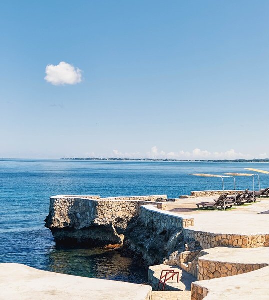 • Strand „Negril Cliffs“: felsig, Treppen zum Strand, privat, Liegen
