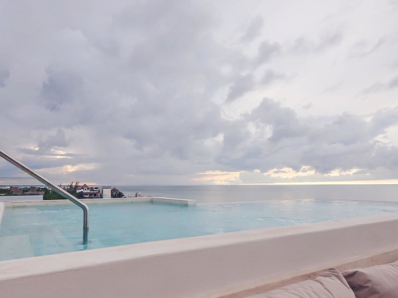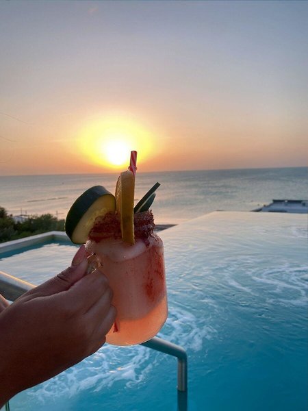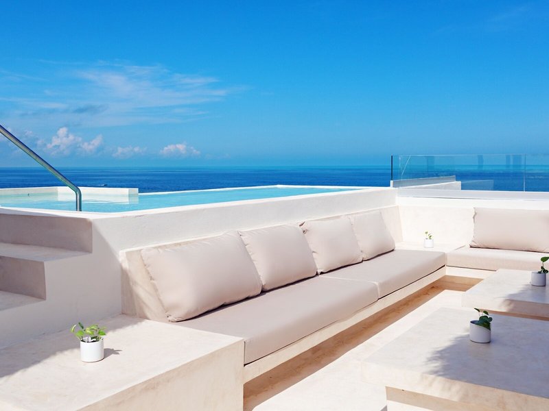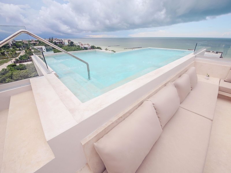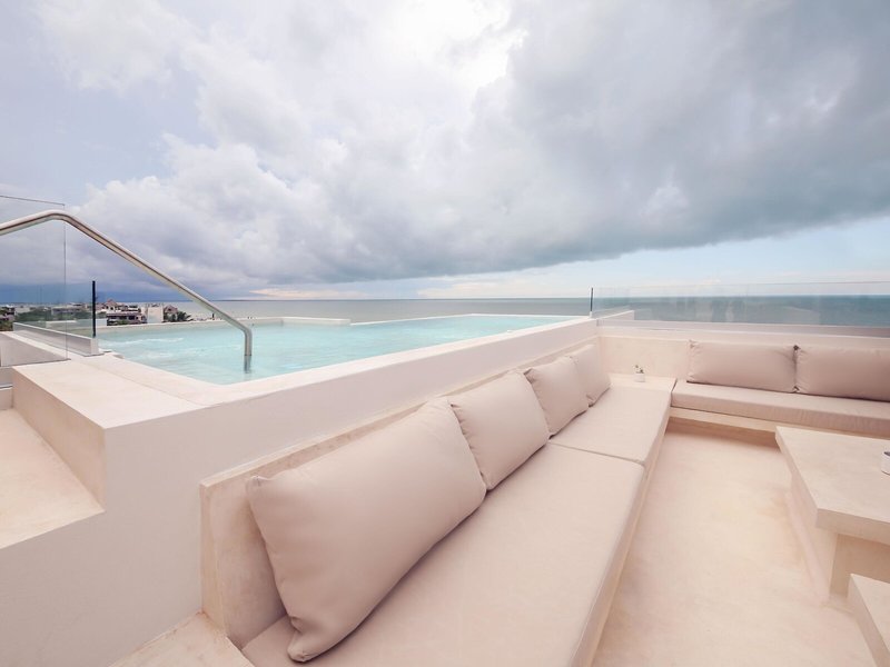 - Infinitypool „Pool“: Outdoor, flach abfallend, auf der Dachterrasse, Hängematten, Liegen, Liegestühle, Sonnendächer