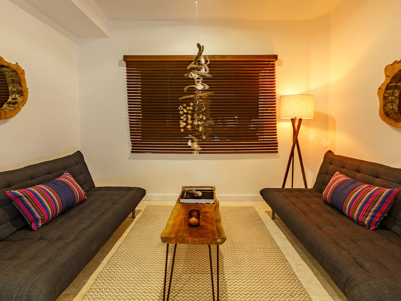 Lage & Umgebung In privilegierter Lage, nur wenige Schritte bis zur berühmten Quinta Avenida von Playa del Carmen (ca. 150 m) mit Bars und Clubs und ca. 250 m zum Meer. Transferzeit Flughafen Cancun: ca. 75 Minuten. Transferzeit Flughafen Tulum: ca. 2,5 Stunden.