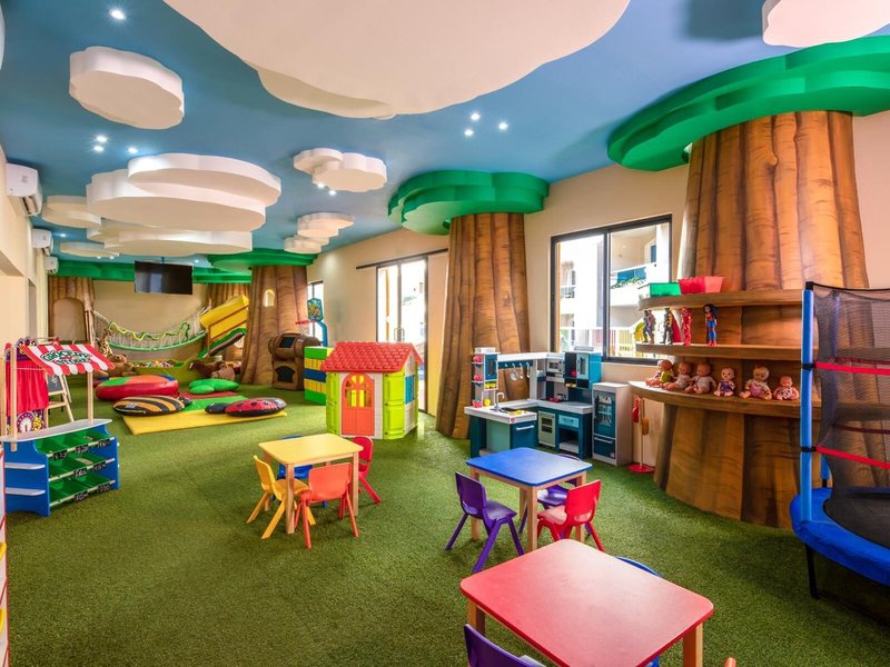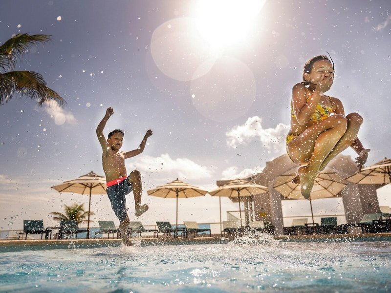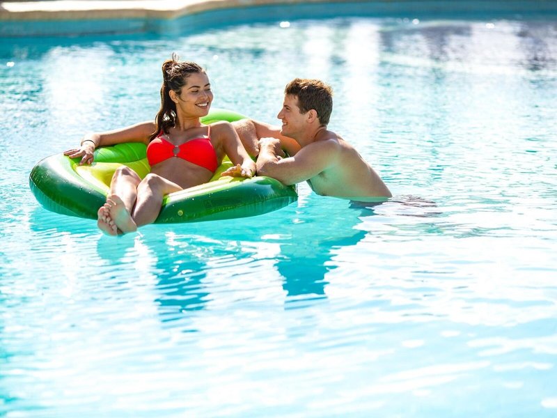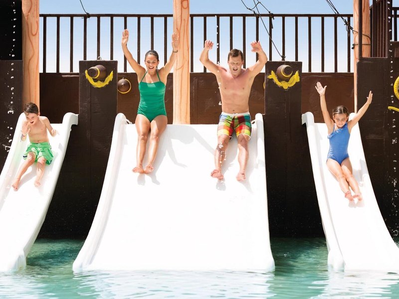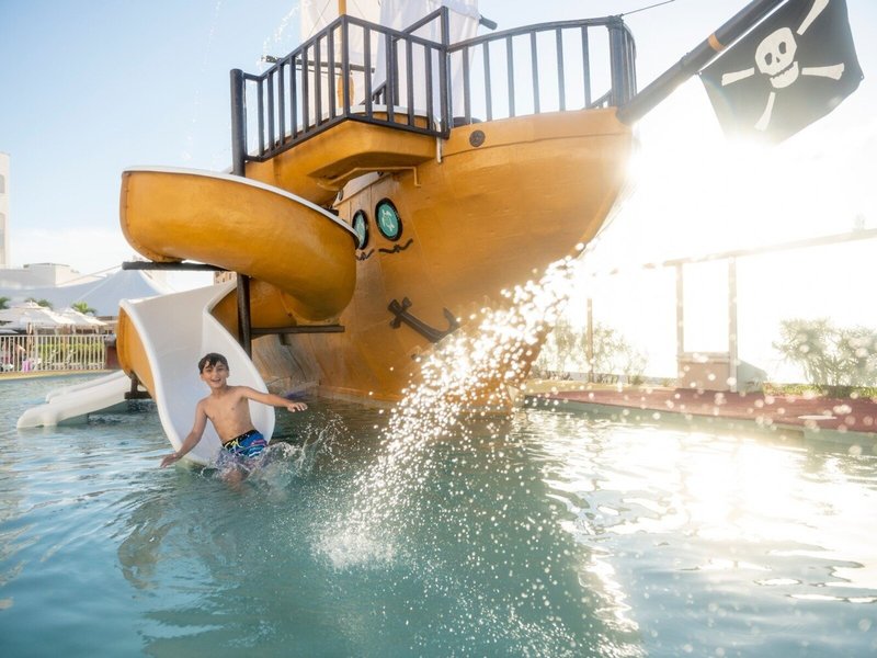 Sport & Fitness: Ein Außenpool und ein Hallenbad laden zum entspannten Badevergnügen ein. Kinder können sich in einem Planschbecken austoben. Im Badebereich gibt es zudem einen Whirlpool, eine Wasserrutsche und eine Poolbar. Auch eine Terrasse mit Sonnenliegen und Sonnenschirmen ist vorhanden. Sportliche Abwechslung bieten viele verschiedene Aktivitäten, die in dem Resort angeboten werden, wie z.B. Radfahren/Mountainbiking, Tennis, Beachvolleyball, Minigolf, Golfen und Paddle-Tennis. Zum Wassersportprogramm der Unterbringung gehören Windsurfen, Jetskifahren, Kajakfahren, Schnorcheln, Tauchen und Aqua-Fitness. Den Gästen steht im Resort mit einem Fitnessstudio, Tischtennis, Billard, Squash, Yoga und Aerobic ein breites Spektrum an Indoor-Sportarten zur Auswahl. In der Unterbringung werden verschiedene Wellnessangebote wie Spa, Sauna, Dampfbad, Hammam, Schönheitssalon und Massage-Anwendungen offeriert. Ein Animationsprogramm, ein Miniclub und eine Disco sorgen für besten Freizeitspaß.